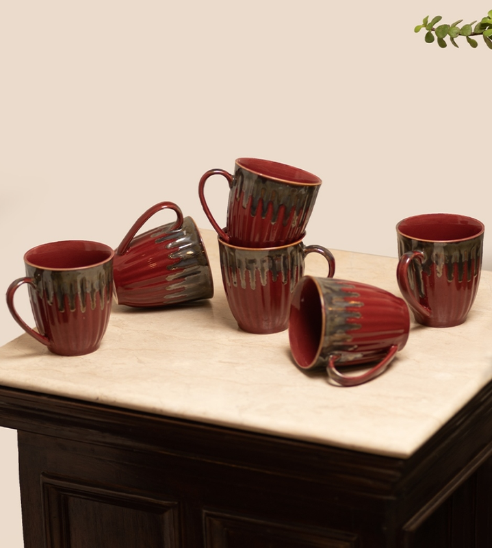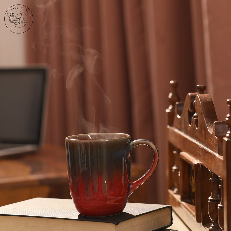 Ministry Of Klay Red Multicolor flow Ceramic Coffee Mugs / Microwave Safe, Set of 2, 350ml each