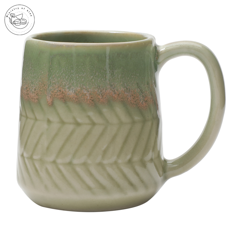 Forest Green Grooved Tea/Coffee Mugs-Set Of 2