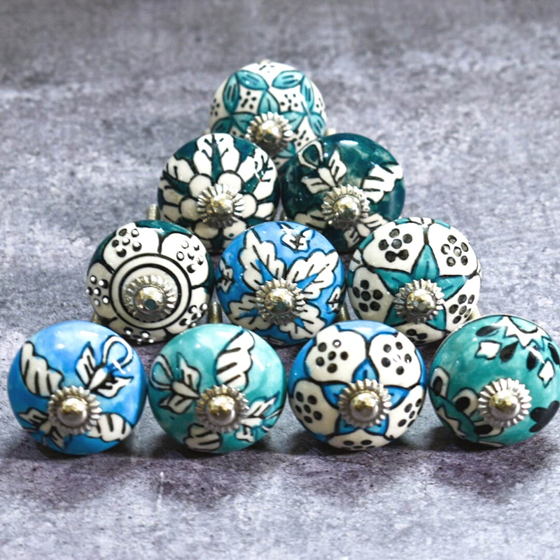 Ceramic Cabinet Drawer Pull /Green Blue Knobs Hand Painted Pack of 10Multi color /Use for Cupboard And Wardrobe Door