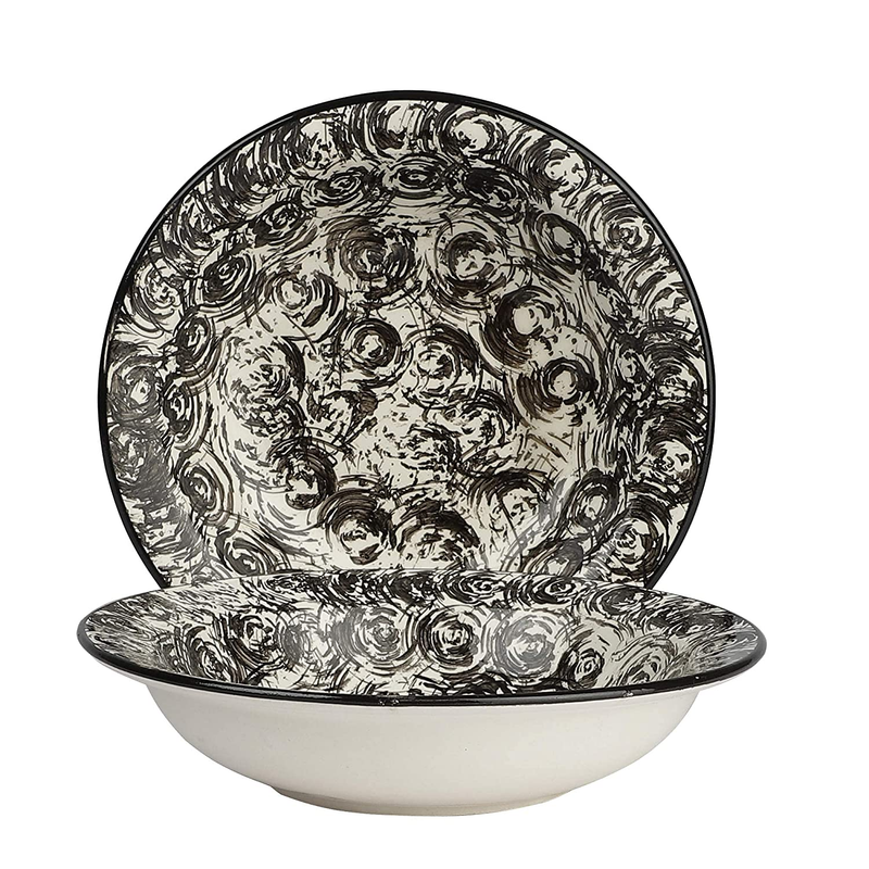 The Decor Lane Black Color Ceramic Hand-Painted Pasta Plate| Soup Plate | Snack Plate | Size 7 Inch |Microwave Safe, Oven Safe |Set Of 2 Plates