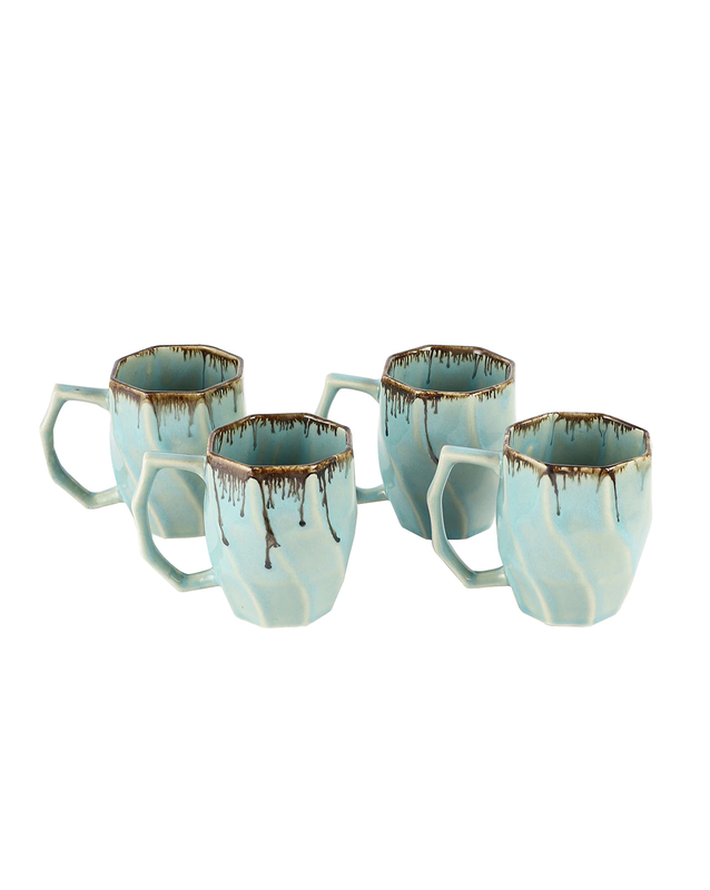 Ceramic Drip Effect Geometric Coffee Mugs